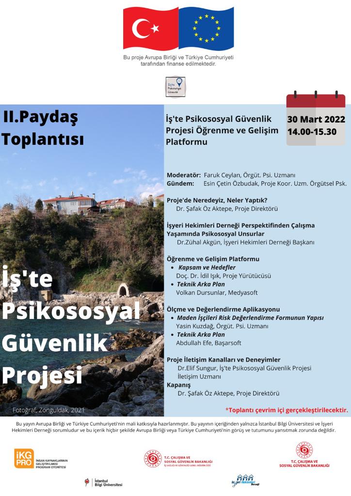 İş’te Psikososyal Güvenlik projemizin 30 Mart 2022 Çarşamba günü online (çevrim içi) olarak gerçekleştirilecek 2. Paydaş Toplantısı’nda sizi de görmekten mutluluk duyarız. Öğrenme ve Gelişim Platformu’nu anlatacağımız bu toplantıda sizlerin katkıları oldukça değerli olacaktır.