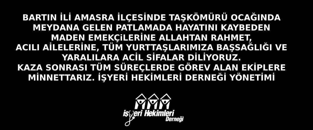 BARTIN İLİ AMASRA İLÇESİNDE TAŞKÖMÜRÜ OCAĞINDA MEYDANA GELEN PATLAMADA HAYATINI KAYBEDEN MADEN EMEKÇİLERİNE ALLAHTAN RAHMET, ACILI AİLELERİNE, TÜM YURTTAŞLARIMIZA BAŞSAĞLIĞI VE YARALILARA ACİL SİFALAR DİLİYORUZ. KAZA SONRASI TÜM SÜREÇLERDE GÖREV ALAN EKİPLERE MİNNETTARIZ.